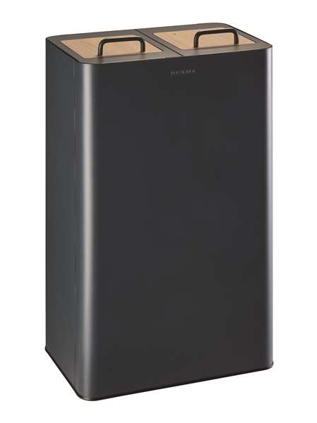 poubelle tri selectif 2*40l venus signature - 2 supports sacs etriers - couvercles avec trappe compact hpl - anthracite 7016 mat texture