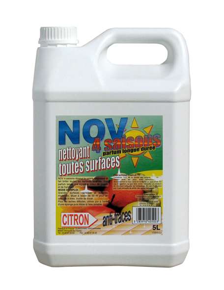 Nettoyant SANS RINCAGE toutes surfaces lavables.NOV 4 SAISONS dissous la saleté, dégraisse et fait briller.Le parfum Citron frais laisse aux locaux une agréable odeur de propre et de fraîcheur.