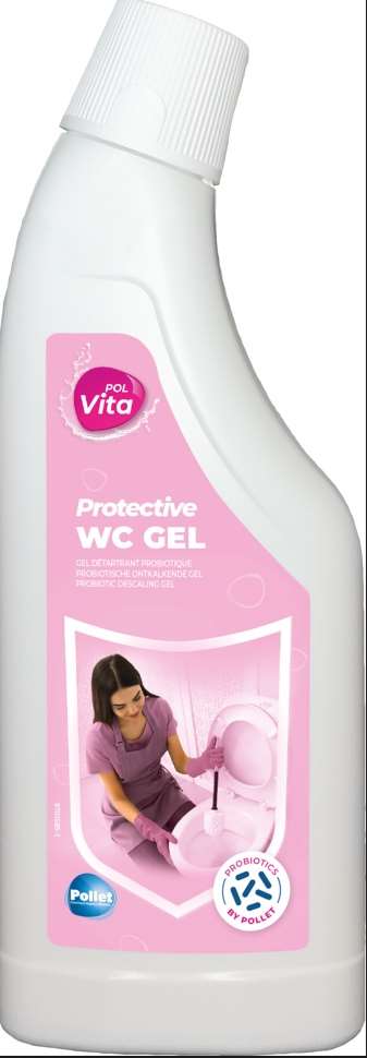Gel détartrant journalier à base de probiotiques pour cuvettes de toilettes et urinoirs. Installe une microflore
