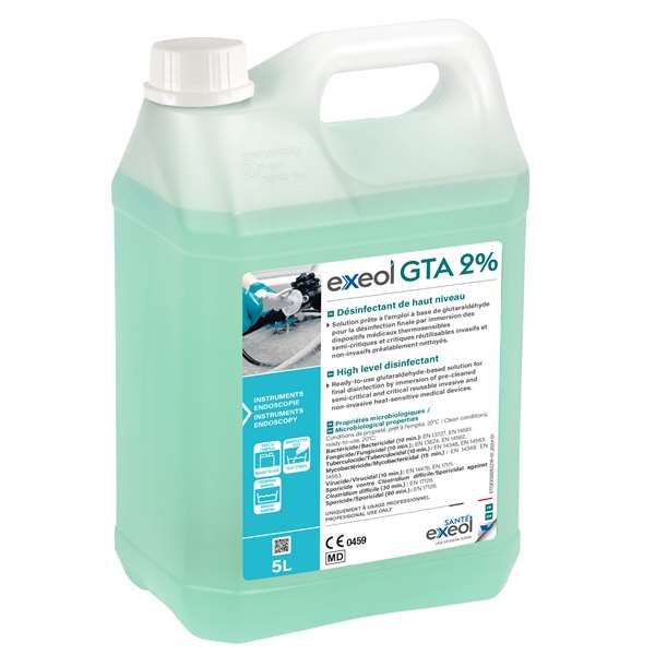 Désinfectant de haut niveau - Solution prête à l'emploi à base de glutaraldéhyde pour la désinfection finale par immersion des dispositifs médicaux thermosensibles semi-critiques et critiques réutilisables invasifs et non-invasifs préalablement nettoyés
