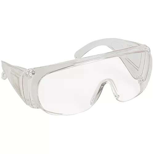 Sur lunettes VISILUX. Oculaire en polycarbonate incolore, traitement anti-UV, anti-rayure K, résistance aux températures extrêmes, compatible avec le port de lunettes correctricesSachet individuel brochable