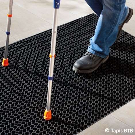Conçu pour le passage en fauteuils roulants et pour les cannes d'handicapés (trous de diamètre inférieur à 20 mm). De grande résistance et antidérapant, il est modulable grâce à ses pastilles de raccordement. Il résiste à des températures de -20 à +50 °C.