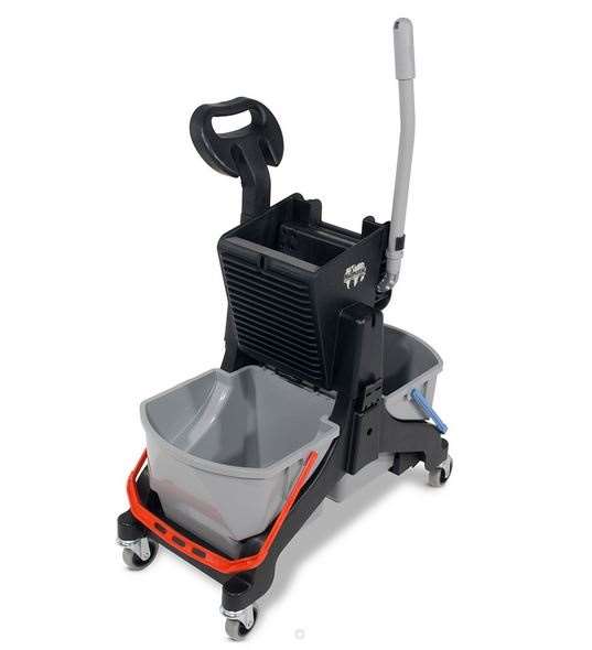 Le chariot MIDMOP est un double seau (2x16L) dont la presse a été installée en son centre pour lui conférer une stabilité et un accès aux 2 seaux optimisés.