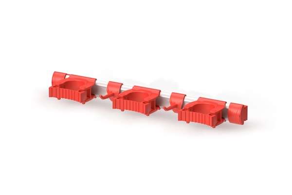 Barre de mur d'outils en aluminium fourni avec support à fixer au mur, 3 supports pour les poignées Ø 25-35 mm, 2 crochets, kit de montage