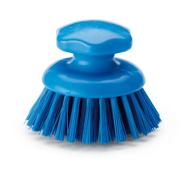 Brosse ronde avec manche ergonomique, pour le nettoyage de surfaces courbes et irrégulières.